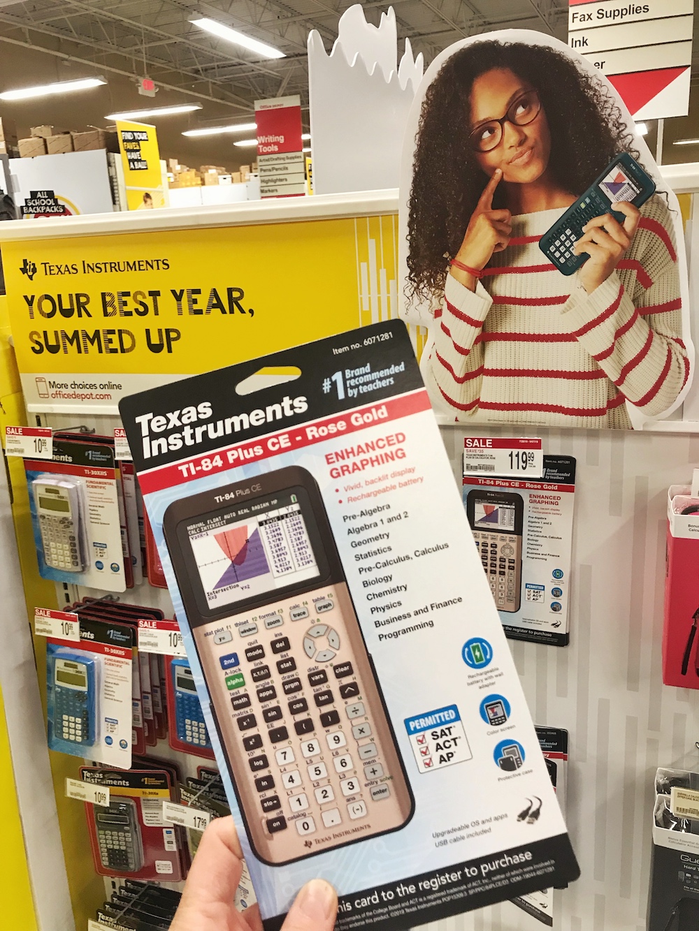 The TI-84 Plus CE is a really sophisticated and intimidating item for most kids, but I love that the local Office Depot we went to offered a ton of different color options! Once she saw that she could get a Rose Gold calculator, she quickly became a big fan and couldn’t wait to get it home and try it out!! That put my mind at ease for sure.