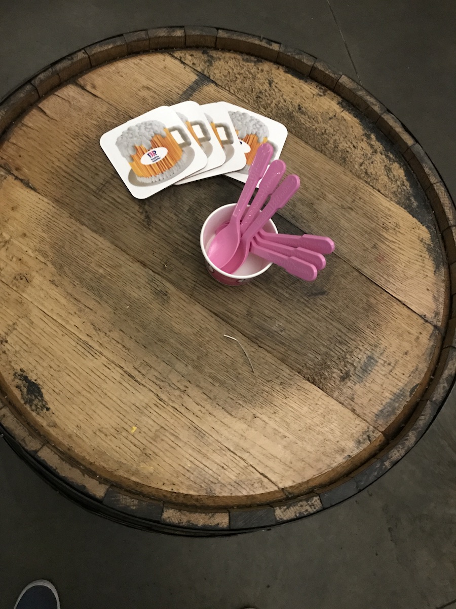 The tour was nice and pretty quick, which worked well since the beer and ice cream mind-blowing session was to commence right after it was over. We went back to the tasting room/bar area and heard about the idea from a brewer as well as a Baskin-Robbins Culinary Team member, Chef Kelly German. It was interesting to hear about how it all went down and what went into it all. To sum it up…beer is awesome, ice cream is awesome, beer and ice cream together would likely be awesome-er. They were correct. Very, very correct.