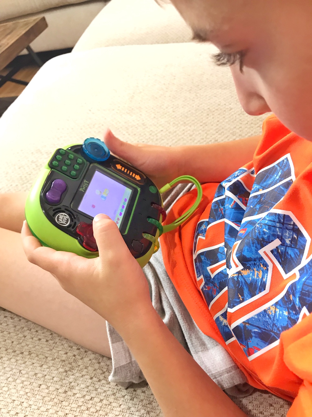 There are 12 preloaded games and there’s so much to play. Caleb loves the DJ game because it really takes advantage of all the buttons, levels, and slides the system offers. There’s a lot going on, which makes for all the more fun! The toy doesn’t need Wi-Fi to play on the go, but game packs need Wi-Fi to download, so just keep that in mind. That being said, he really does have a good time with all of the games, be it focused on math, science, or literacy. There’s a lot of play with and he takes advantage of it all!