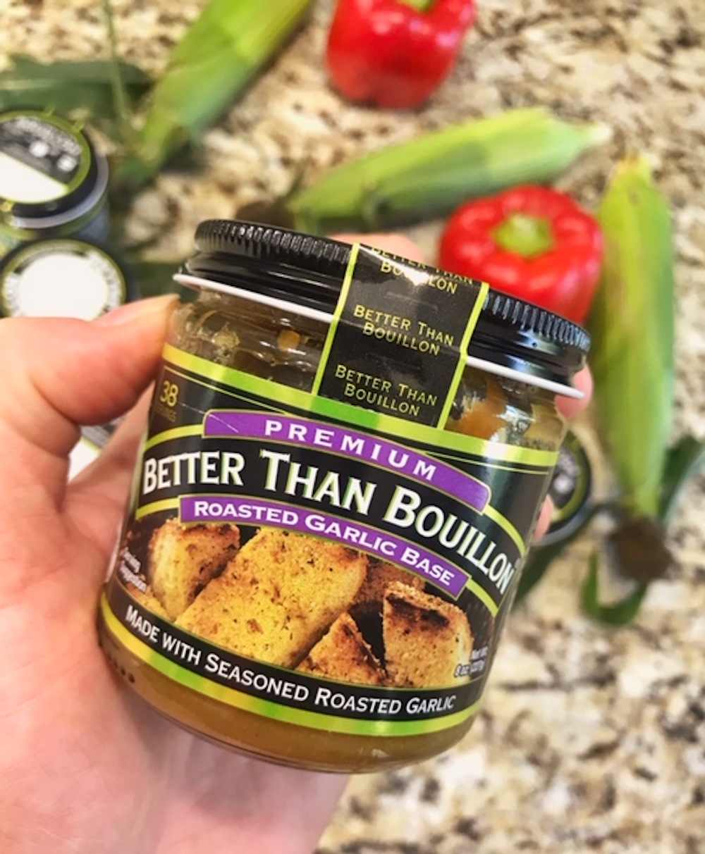 My entire family loved the Better Than Bouillon Roasted Chicken Base marinated chicken and the Better Than Bouillon Roasted Garlic Base marinated steak! It went perfectly with the grilled corn and red peppers, rice and beans!! I can’t wait to try the other base flavors!! Using this as a marinade was awesome and so easy. All I added was fresh black pepper and oregano! Done and done. It really is a great way to bring out some flavorful meat with little effort anytime you are looking to grill.